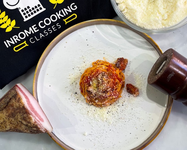Once the cooking begins, follow your chef’s expert guidance as you master the delicate art of balancing flavors and textures — from tempering eggs for the perfect Carbonara to mastering the peppery creaminess of Cacio e Pepe and the rich savoriness of Amatriciana.
